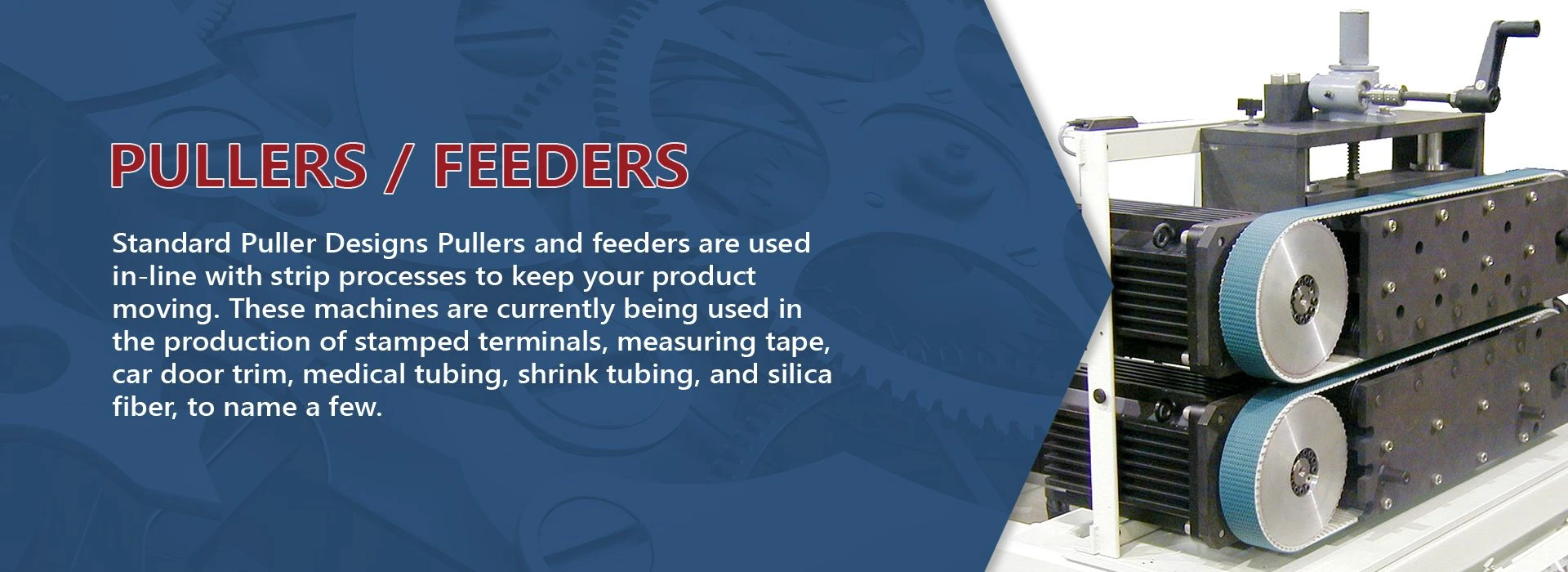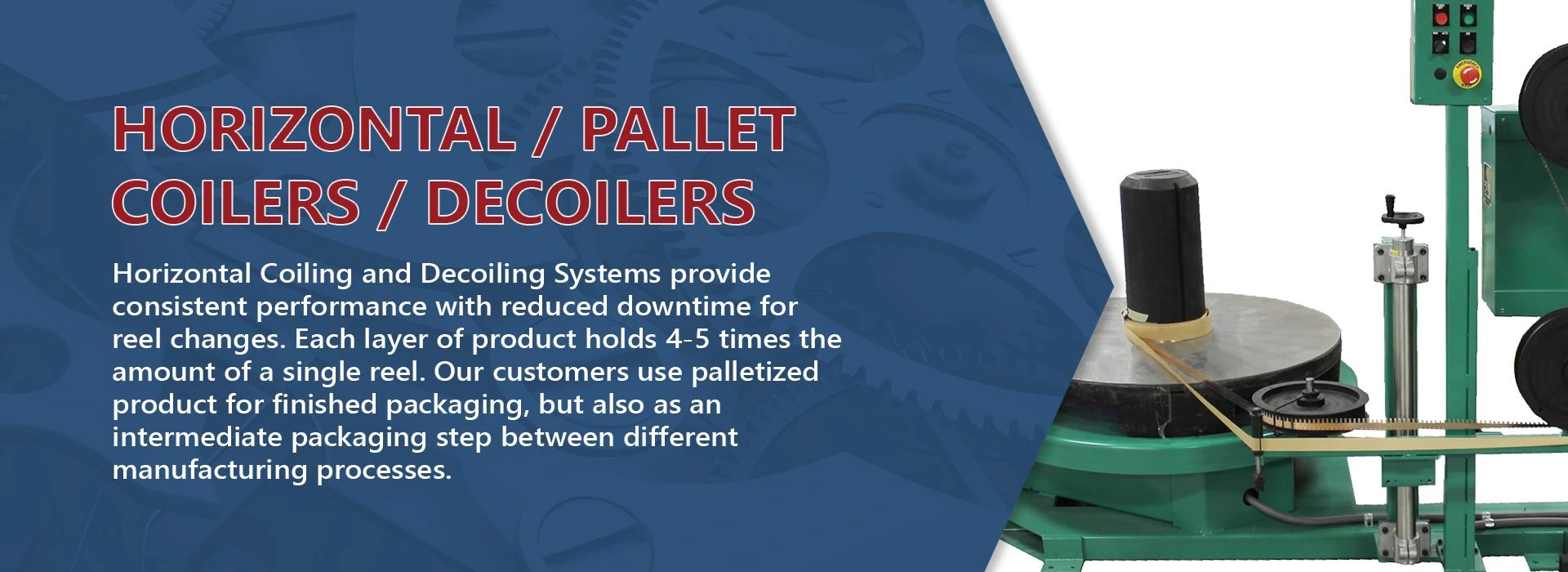 JCR builds payouts, winders and re-winders, accumulators, caterpillar pullers… anything you need to keep continuous products moving. We have experience with stamped and plated metal strip, medical tubing, shrink tubing, wire and fiber optics, to name just a few. Let JCR put our knowledge to work for you.
